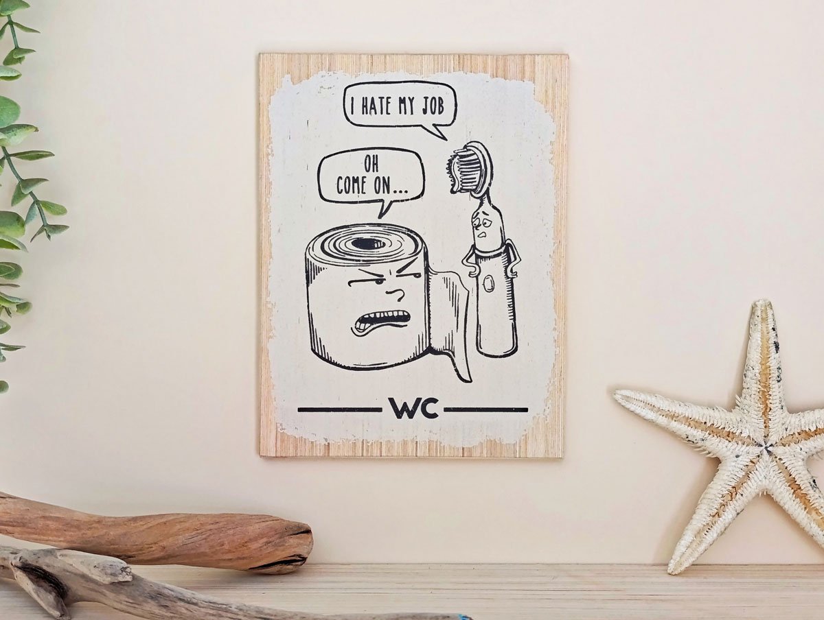 Nuestros carteles de madera están cuidadosamente diseñados y estampados a mano mediante serigrafía, utilizando lacas con base al agua certificadas, sostenibles y respetuosas con el medio ambiente.