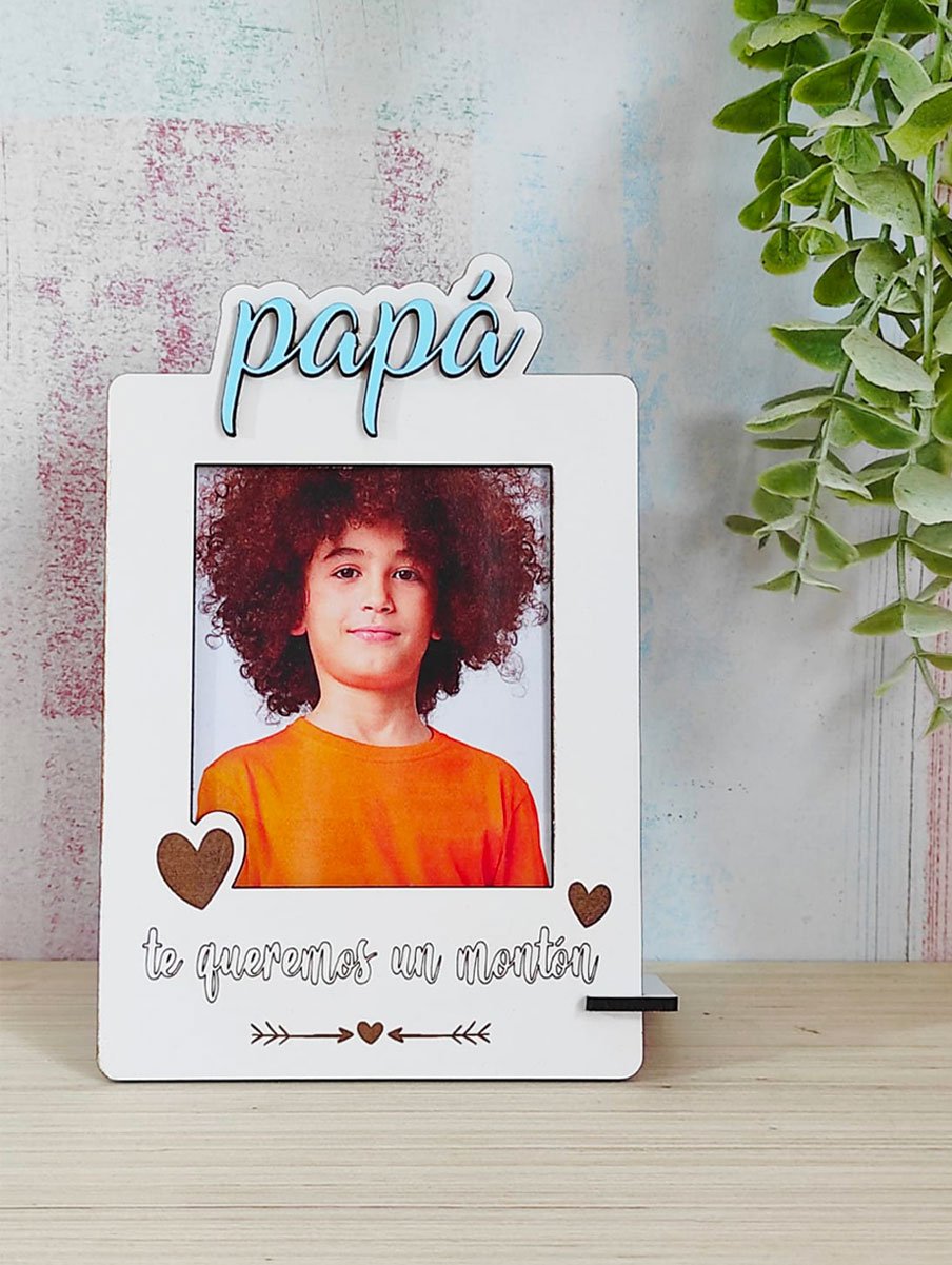 Ideal para comuniones, bodas, bautizos, cumpleaños, etc. PRECIO: 1 a 6 7,90€ – 7 a 20 7,20€ – 21 o + 6,85€. Material DM laminado 3,2mm. Medidas (alto x ancho x prof.): 17,5 x 12 x 8 cm. hueco para foto: 9 x 8 cm.